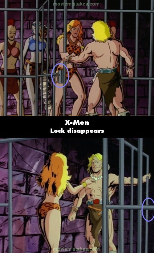 Continuity mistake: When Kazar and Shanna hug after he has freed her and the other captives, the lock on the cell door is missing. (00:15:30)