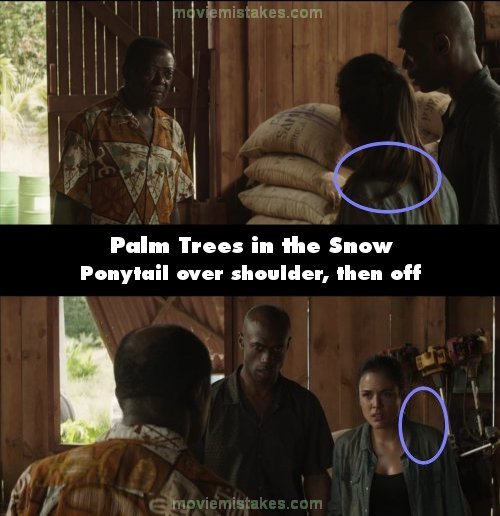 Continuity mistake: When Clarence attempts to speak with Simon in the barn, in the shot where she says "Ask him if he's Simon" to Iniko, her ponytail can be seen going over her left and right shoulder. In the next shot, her ponytail can only be seen over her left shoulder. Then in the shot after that, her ponytail is entirely behind her head. Then it's over her left shoulder again, then away from her shoulder. (01:21:30)