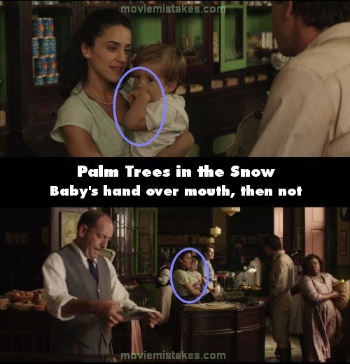 Continuity mistake: In 1960, when Killian is speaking with Julia in the shop, the shot after Killian says "I don't know" after being asked if Jacobo is coming back, the baby Julia is holding has her left hand over her mouth. The shot then cuts to a wider shot of the room and the baby's hand is now away from her mouth. (01:31:55)