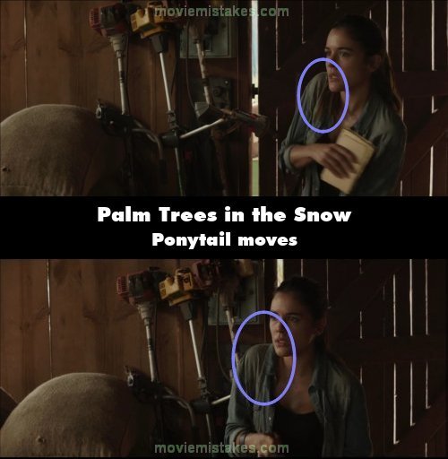 Continuity mistake: When Iniko takes Clarence into the barn, and he talks with Simon, Clarence begins putting some photographs back into her bag. In this shot, some of her ponytail can be seen going over the front of her right shoulder. Simon begins walking over to her and none of the ponytail can be seen over her shoulder. Simon attempts to talk to her and her ponytail is suddenly over her right shoulder again. (01:20:50)