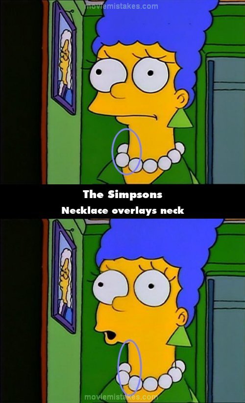 Revealing mistake: When Marge says she's sure Bart doesn't mean to be bad, her necklace flashes through her neck. (00:03:40)