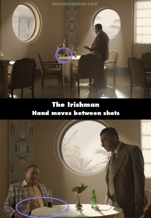 Continuity mistake: When Jimmy is sitting with Frank at the restaurant complaining about the fact that Tony Pro is late, we see Frank holding a Coca-Cola bottle with the right hand, but in the next shot the hand disappears from the table and stays down resting on the chair.