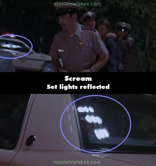 Visible crew/equipment: When the officers take Billy away from Sidney's house, a set of lights is reflected in the back window of the car. (00:31:00)