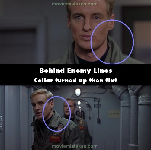 Continuity mistake: While speaking with the Admiral, Burnet's collar is turned up at the back of his neck. When he leaves and is talking to Stackhouse it's lowered and neat. When Stackhouse turns him round to speak to him, it's raised again. (00:11:40)