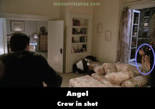 Visible crew/equipment: When Angel is fighting the demon a cameraman is visible rising on the lower right. (00:27:13)
