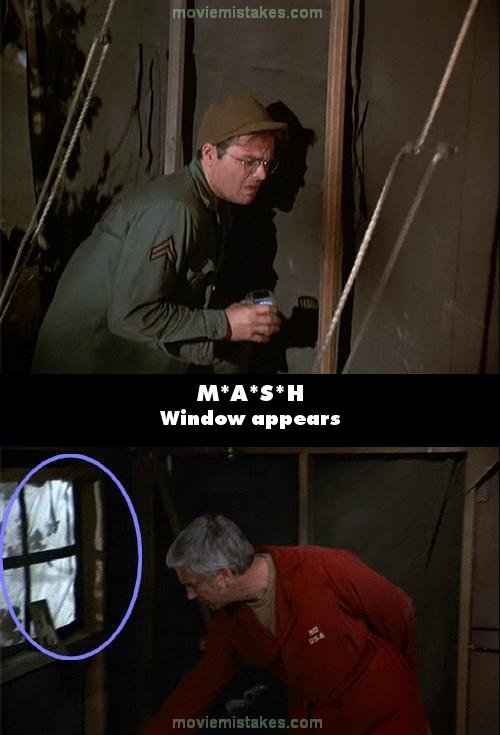 Continuity mistake: When Radar is slipping the glass of milk into Buzz's tent, we see the outside of the tent and there are no windows. From the inside, the milk is placed on a table that is right under a window. Also, the milk is already on the table in a scene before Radar puts it there. (00:13:20)