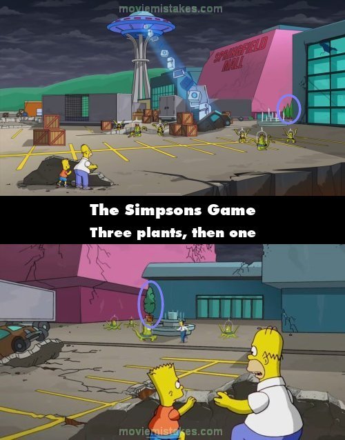 Continuity mistake: Invasion of the Yokel Snatchers: In the establishing shot of the opening cutscene, to the right of shot, three bush plants can be seen in between the mall and the blue building next to it. A couple of seconds later, there is only one bush plant.