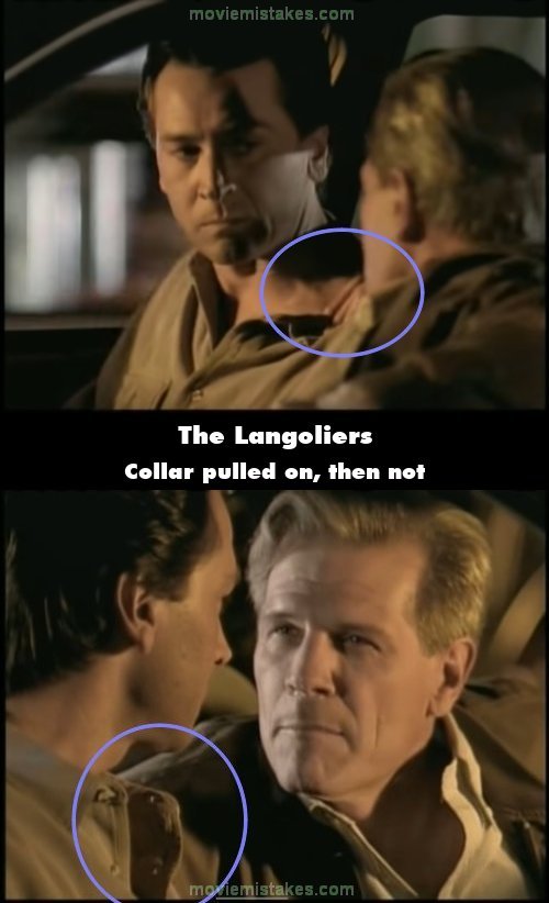 Continuity mistake: When Nick tells his associate he carries out the hit, the associate grabs onto his shoulder and is shown pulling on the collar of Nick's shirt when he does so. When the camera changes angles to focus on the associate, Nick's collar doesn't appear to be getting pulled on at all. (00:01:43)