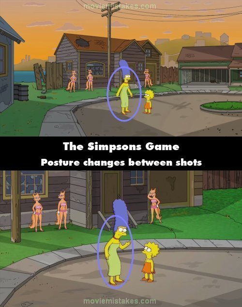Continuity mistake: Grand Theft Scratchy: When Marge says "Look at this place. Graffito, bottle and bags", she is standing upright. In the next shot, she is suddenly hunched forward towards Lisa.