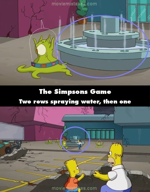 Continuity mistake: Invasion of the Yokel Snatchers: When the water fountain is first shown, there are two rows of sprinklers shown around the fountain spraying water. One row of sprinklers around the edge of the fountain and a second row along the interior. When the shot cuts, the row of sprinklers around the edge of the fountain are no longer spraying water, leaving only the interior row spraying water.
