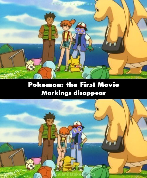 Continuity mistake: When Misty retrieves the white card, the marks on Ash's cheeks go from present to absent. (00:27:35)