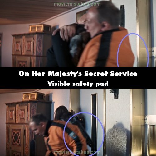 Revealing mistake: When the thug is stuck to the spikes on the wall, the protruding safety pad under his clothes is very noticeable.