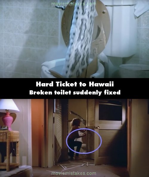 Continuity mistake: The snake bursts out of the toilet and breaks it into pieces. Angle changes to a wide shot and the toilet is unblemished.