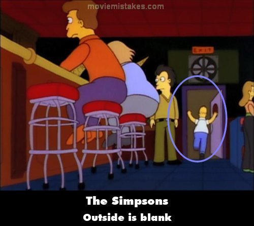 Revealing mistake: When Homer leaves the bar after the Superbowl, as he goes through the door, the background is missing. It's just a brown background. (00:20:00)
