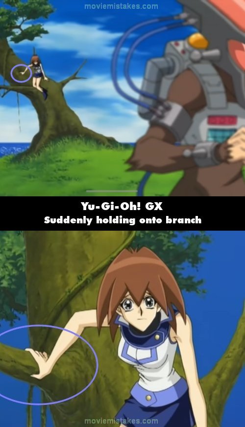 Continuity mistake: After Jaden summons Sparkman to the field and says "Monkey see, monkey do", the shot cuts to Wheeler, before panning over to Jasmine lying on the tree. When the shot cuts to a closer angle of Jasmine, her right hand is suddenly touching onto a branch, even though it wasn't in the previous shot. (00:08:49)