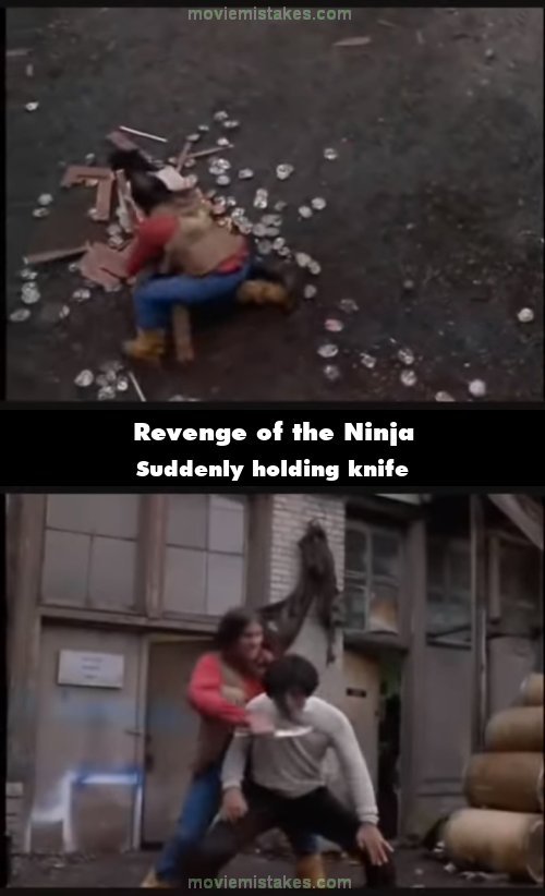 Continuity mistake: During the alley fight scene, the Indian hits Cho over the head with a crate then picks him up with both hands. In the next shot, the Indian suddenly is holding a knife.