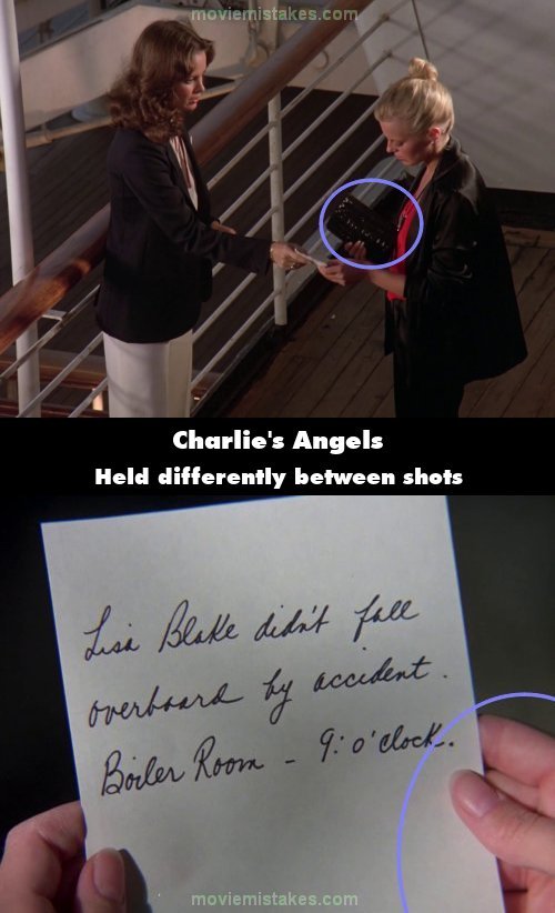 Continuity mistake: Kris holds a piece of paper with her left hand and a bag with her right hand. In the following shot, she holds the piece of paper with both hands. (00:23:50)