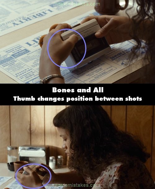 Continuity mistake: When Maren is looking at her Walkman in the diner before tearing out the cassette, right after pressing on the buttons, her thumb changes position between shots. (01:34:57)