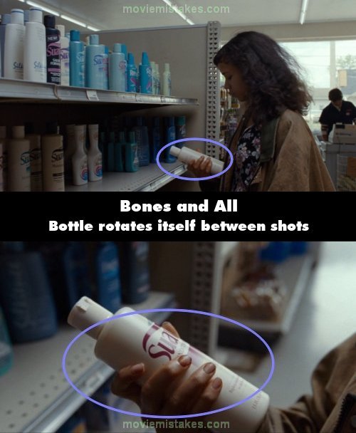 Continuity mistake: When Maren is in the store in Indiana, she picks up a bottle of moisturiser from a shelf. The label is facing away from her when she first picks it up, but in a close-up of the bottle, the label is facing her. (00:32:50)