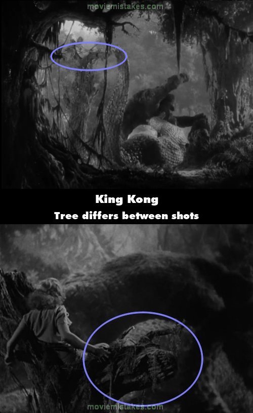Continuity mistake: During the fight between Kong and the dinosaur, the shape of the tree Ann is on differs between shots.