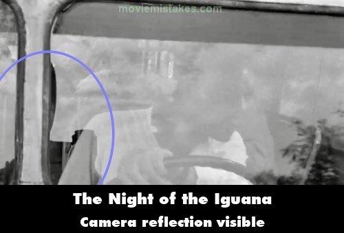Visible crew/equipment: While Shannon is driving the tour bus, there's a long shot of the bus speeding down the hill, and in the next exterior closeup facing the windshield, we can see the reflection of the camera. (00:26:40)