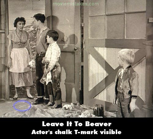 Visible crew/equipment: After Bengie pours the green paint all over himself, when his mother arrives, there's a chalk T-mark on the floor by the door. (00:19:45)