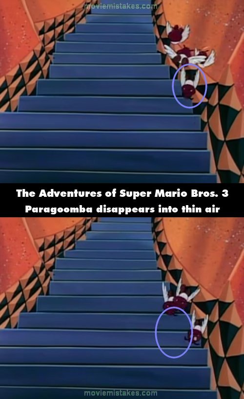 Revealing mistake: When some Paragoombas fall after hitting a wall, they disappear into thin air. (00:09:35)