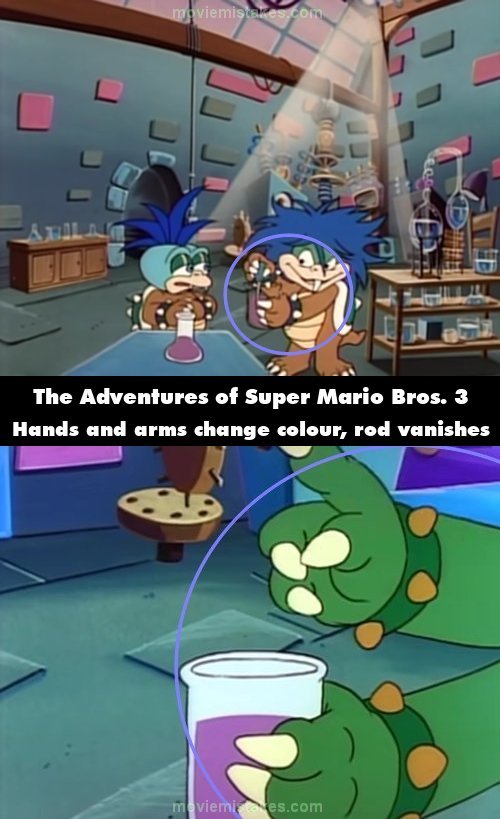 Continuity mistake: When Kooky tells Cheatsy not to rush him, the stirring rod he was holding disappears, and his hand turns green. (00:08:58)