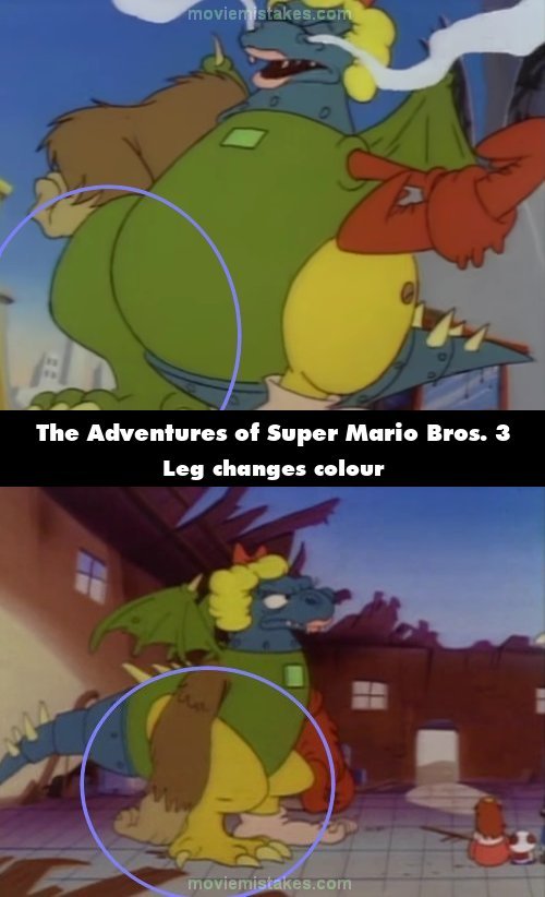 Continuity mistake: When Madzilla explains that he used to be a robot, the right leg of Mario's robot changes from green to yellow. (00:10:58)