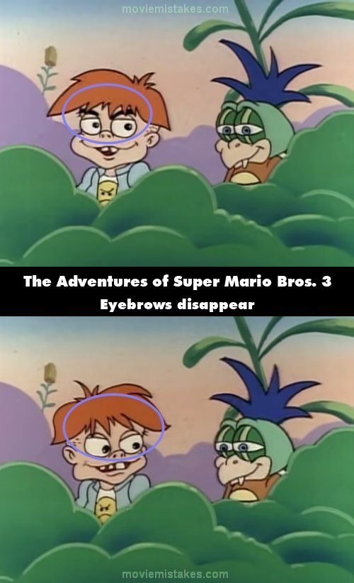 Continuity mistake: When Junior asks if he should yell again, his eyebrows disappear. (00:04:28)