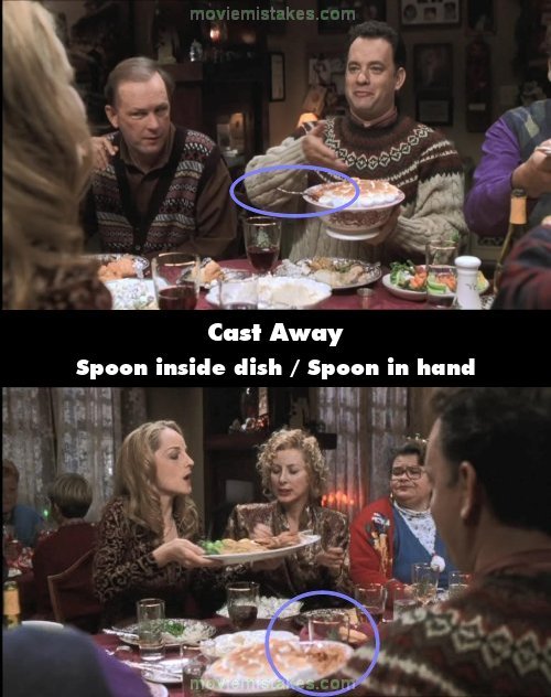 Continuity mistake: At the Christmas meal, Chuck gets passed the candied yams. When he takes the yams, there is a spoon in the dish. When the shot changes to behind him, the spoon is not in his hand. (00:14:30)