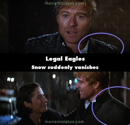 Continuity mistake: When Logan is talking to Laura while it snows, the amount of snow on Logan's shoulder in the close-ups remains unchanged all the time. However, later, when the shot changes to a wide angle, most of the snow is gone. Too fast for it to melt.