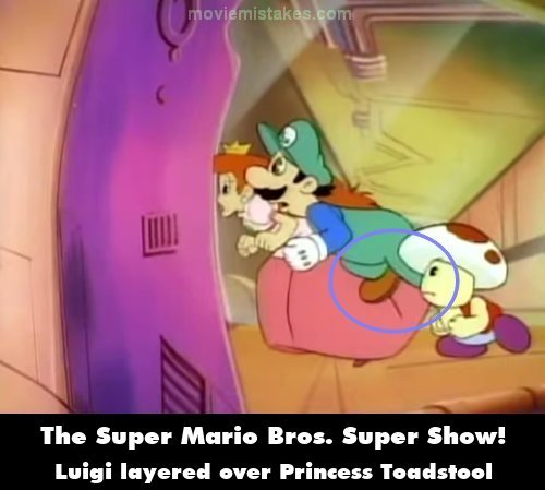 Revealing mistake: When Mario and his friends run, as they fight off Koopa's minions, Luigi runs in midair. (00:07:12)