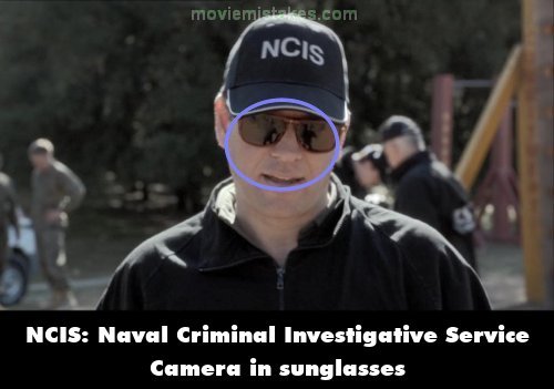 Visible crew/equipment: When DiNozzo first speaks to the two Privates, the camera and an operator are reflected in his sunglasses. (00:05:20)