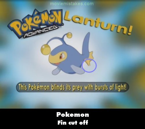 Revealing mistake: In the English dub, during the "Who's That Pokémon?" segment, part of Lanturn's tailfin is cut off. (00:11:39)