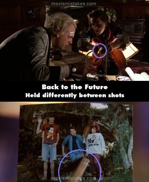 Continuity mistake: When Doc takes the photo from Marty, the way he holds it changes between shots. (00:50:07)