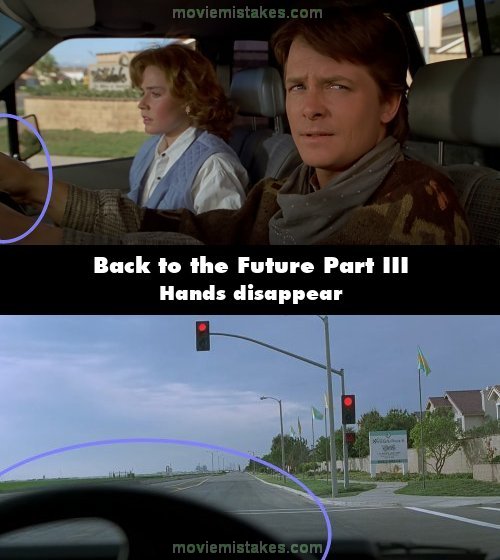 Continuity mistake: When Marty is about to race against Needles, he holds the wheel with both hands. An instant cut later, his hands are gone.