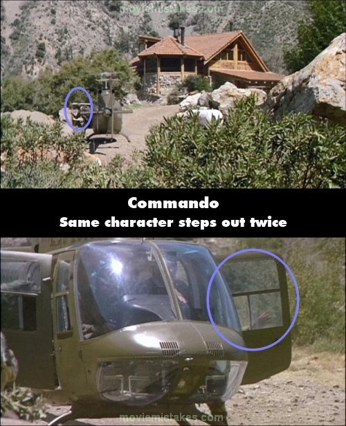 Continuity mistake: When the army helicopter lands, a person gets out on the left-hand side and moves in front of the glass window of the door that's open. Camera changes and he emerges from the helicopter again. (00:09:10)