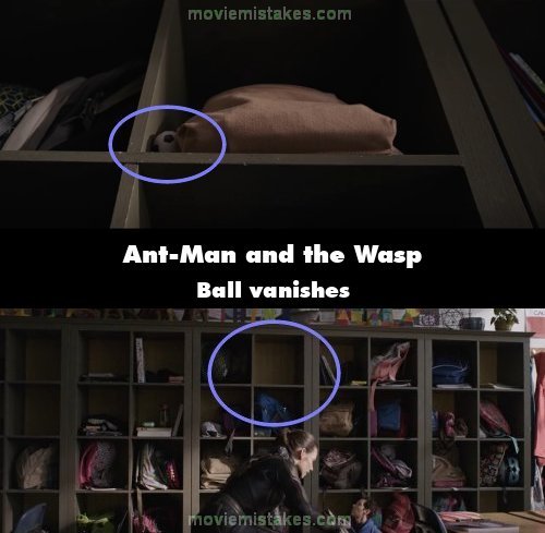 Continuity mistake: Before Hope grabs the backpack, there's a small soccer ball next to it by the edge of the rack. When she grabs it, the ball doesn't drop. It simply vanishes, as proven after Scott opens the backpack.