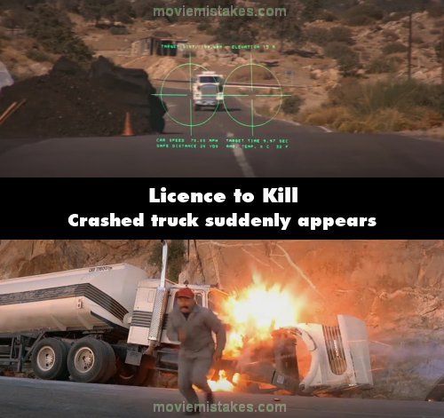 Continuity mistake: After Bond makes the truck crash, he dodges the rocket while the driver stares in awe. Then the crashed truck is hit and explodes. The problem is, when Bond is heading towards the goons, one can see that the crashed truck is nowhere in sight, so not only could the rocket not have struck it, but the driver couldn't have seen what was going on.
