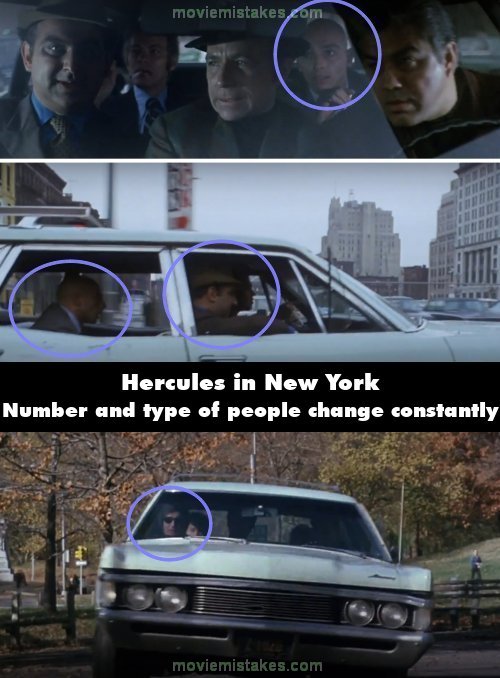 Continuity mistake: When the bad guys chase the chariot, there are 5 of them in the car, 3 in front and 2 in the back. Suddenly, the bald man behind the driver is on the opposite side, and the guy he replaces has vanished, leaving 4 in the car. When the car arrives at Central Park, all of the 5 baddies are back in the car, but the actors are different: the chubby copilot with a hat is now a thin man wearing sunglasses, for example.