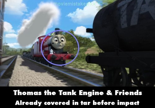 Revealing mistake: Before James collides with the tar tankers, he is already covered in tar before he actually hits them.