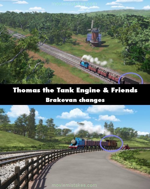 Continuity mistake: Thomas' brake van changes design. From a black one, then to an orange one.