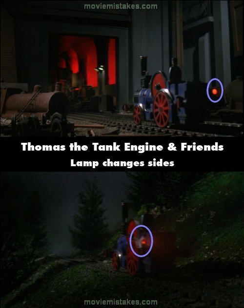 Continuity mistake: When Fergus runs away, his taillamp is on his right side. When he hides in the siding, his lamp is on the left side.