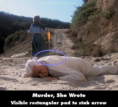 Revealing mistake: When Santana is killed, a rectangular pad where the arrow was stabbed protrudes under his shirt.