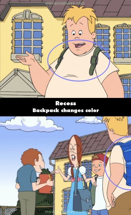 Continuity mistake: When Randall begs Gretchen to do his homework, Mikey says, "Tutoring is just another word for helping," and his backpack is green. A few seconds later, it changes to blue.