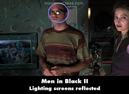 Visible crew/equipment: When K and J talk to Newton, a lighting screen is reflected in his glasses.