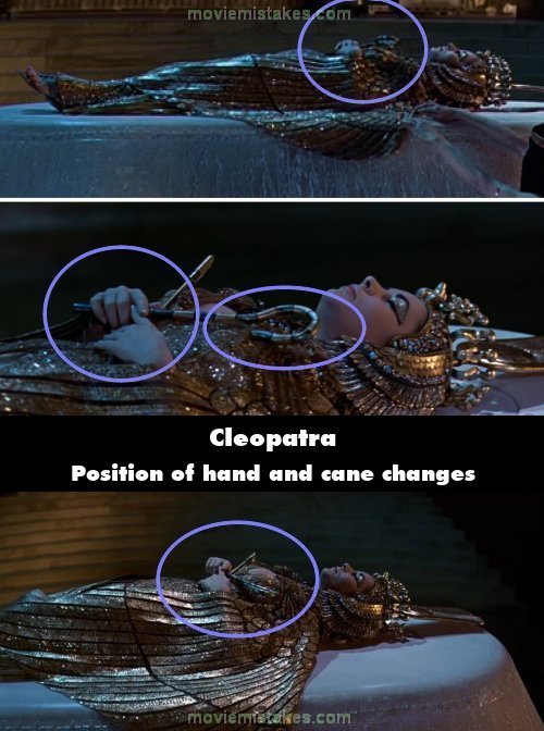 Continuity mistake: When Cleopatra lies dead, the position of her hands and the cane she holds change three times.