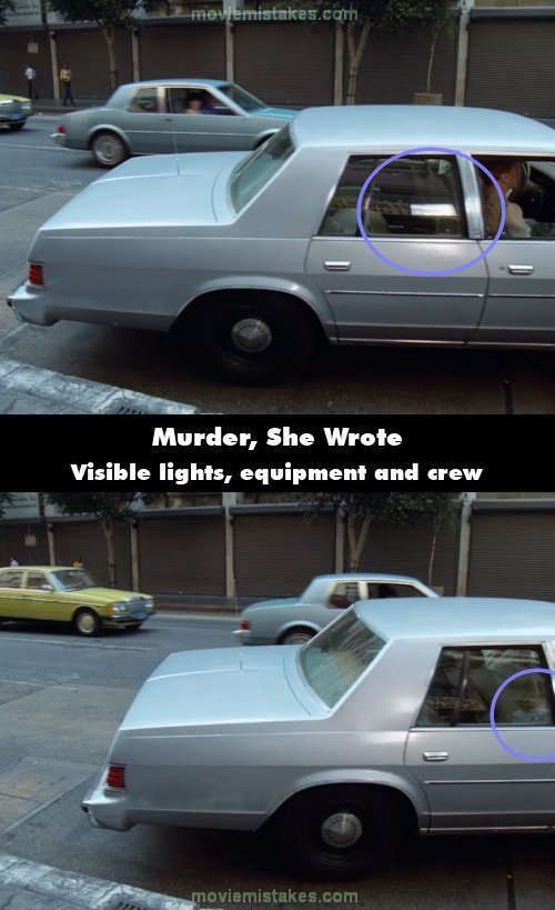 Visible crew/equipment: When Jessica and the Lt. leave for the police station, filming lights, equipment, and a crew member are reflected in the windows.