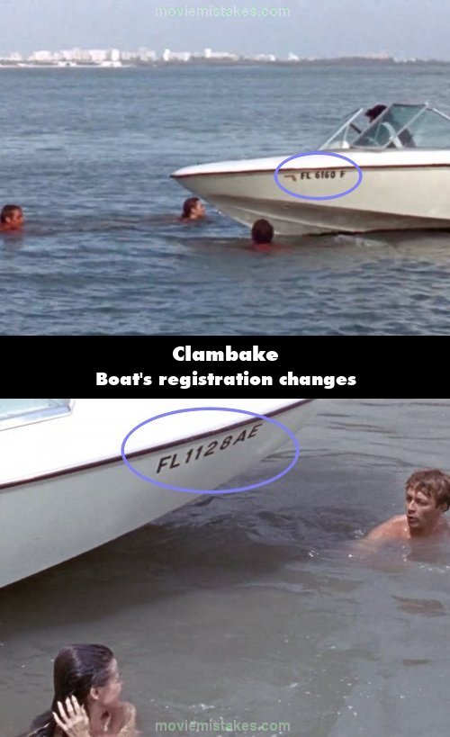 Continuity mistake: During Dianne's second water skiing session, the boat Scott's driving has its registration number on the port and starboard sides; in long shots it's "FL 6160 F" at its side, but in the close-ups it's "FL 1128 AE" at its side. (00:31:30)